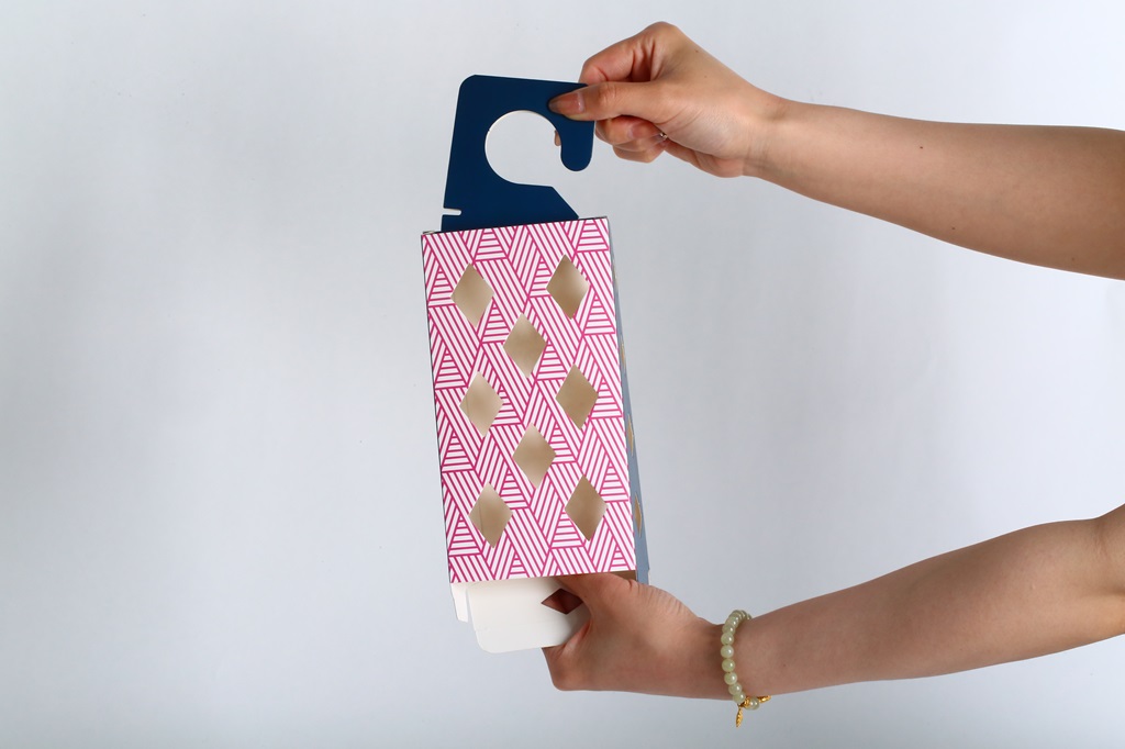 Step 4: Slide the hanger into the box top as shown in the image to secure it to the box.