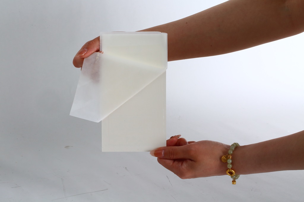 Step 5: Unwrap the glue trap. Note there are two sides: 1) the glue side, and 2) the side for affixing the glue trap to the box.